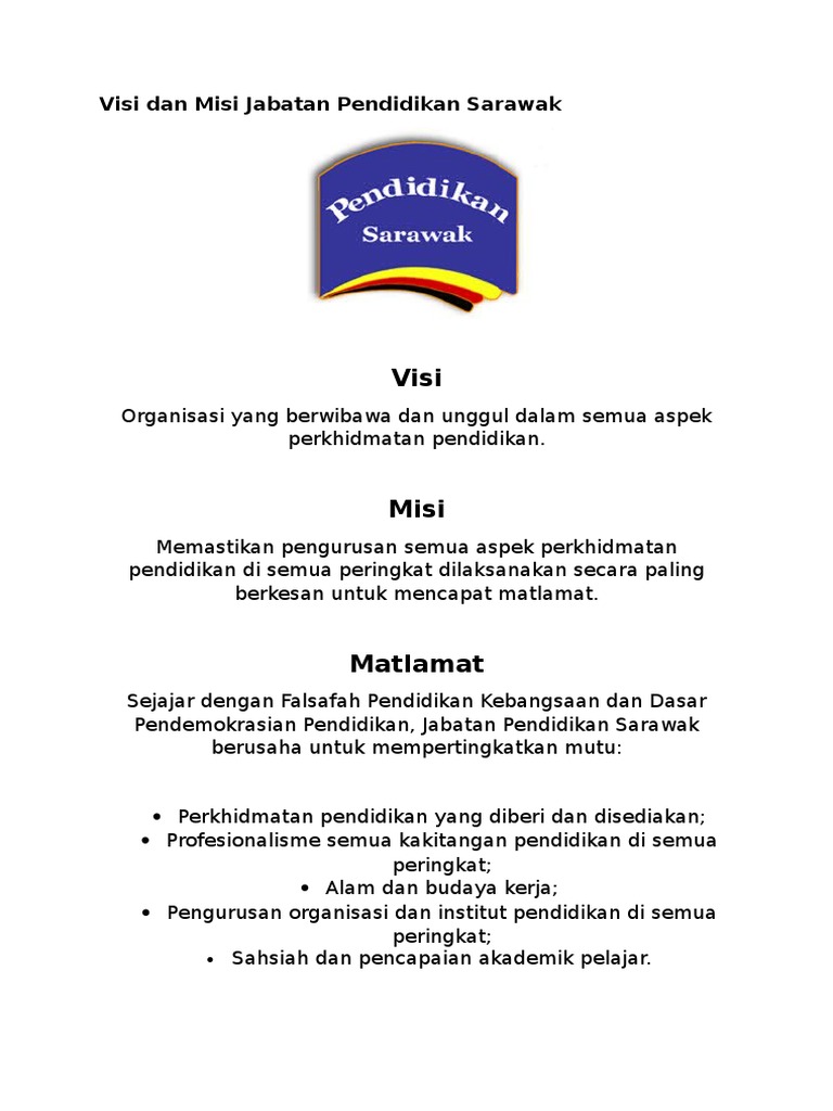 Visi Dan Misi Jabatan Pendidikan Sarawak Pdf